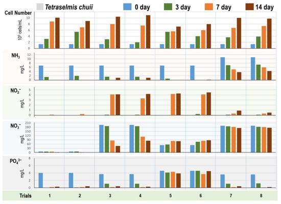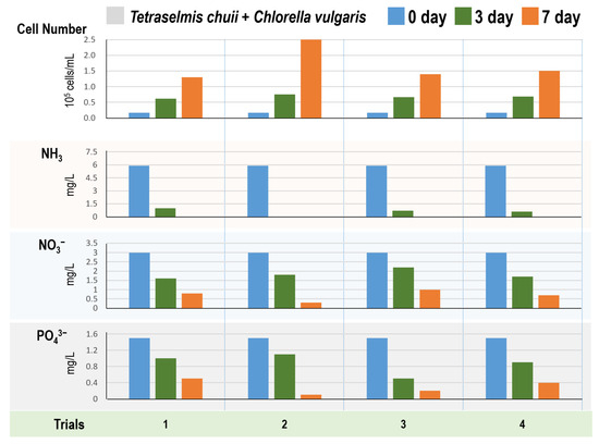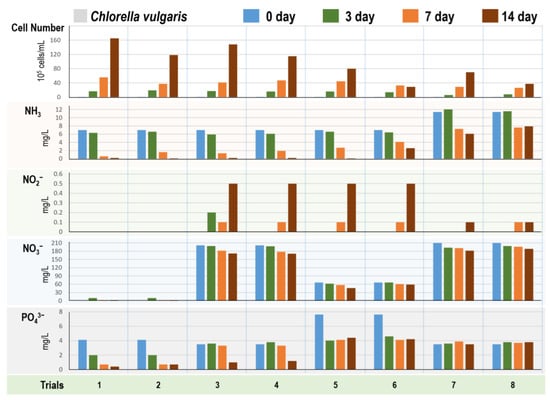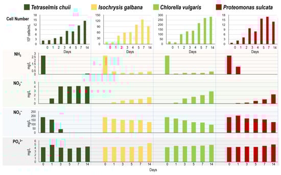 - Lee, S.-A.; Lee, N.; Oh, H.-M.; Ahn, C.-Y. Stepwise Treatment of Undiluted Raw Piggery Wastewater, Using Three Microalgal Species Adapted to High Ammonia. Chemosphere 2021, 263, 127934. [Google Scholar] [CrossRef]