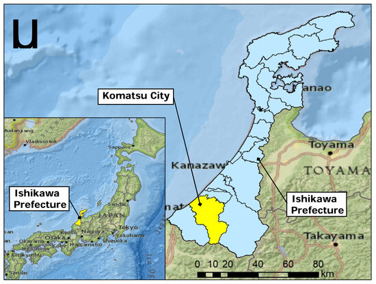 - Komatsu City: Area and Population. Available online: http://www.city.komatsu.lg.jp/4494.htm (accessed on 20 September 2023).