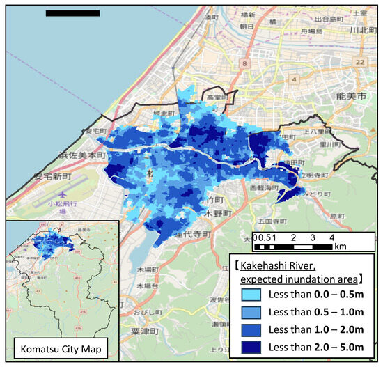 - Komatsu City: Flood Hazard Map. Available online: http://www.city.komatsu.lg.jp/13184.html (accessed on 20 September 2023).