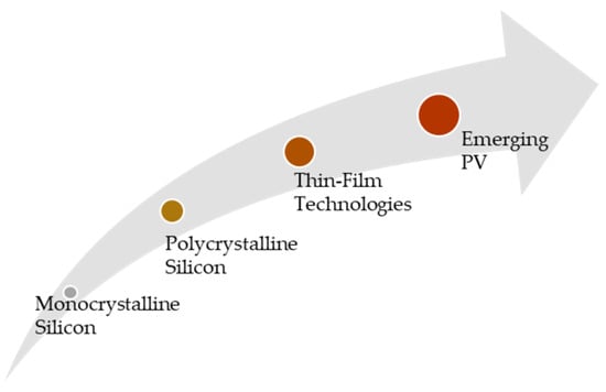 - Organic PV and DSSCs: Organic PV and DSSC technologies have lower costs compared to other PV technologies due to their simpler manufacturing processes and lower material costs. However, they also have lower efficiency compared to c-Si and thin-film PV technologies [56].