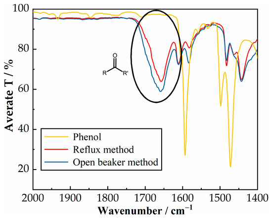 −1 resolution, 32 scans, and a constant sample pressure of 80 units. The obtained concentrations were expressed in terms of the conversion of phenol or as yields of the obtained product, for which Equations (1) and (2) have been used, respectively.