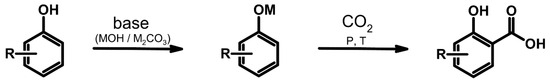 8]. Preparation of salicylic acid through carboxylation of phenol, a traditional Kolbe–Schmitt reaction, has been a standard procedure for over 100 years, and since then various Kolbe–Schmitt-type reactions have been used for the production of various aromatic hydroxyl acids [