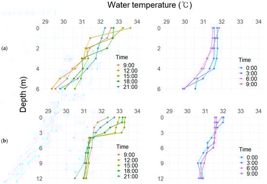 Finally, we calculated the maximum temperature gradient (Max) using temperature difference (ΔT) between adjacent depths (Δd) in the water column to assess the extent and location of water layer separation, which was regarded as the thermocline in this study. To assess the formation of thermal stratification, the values of each indicator were compared with the previously suggested criteria [,,,,,,].