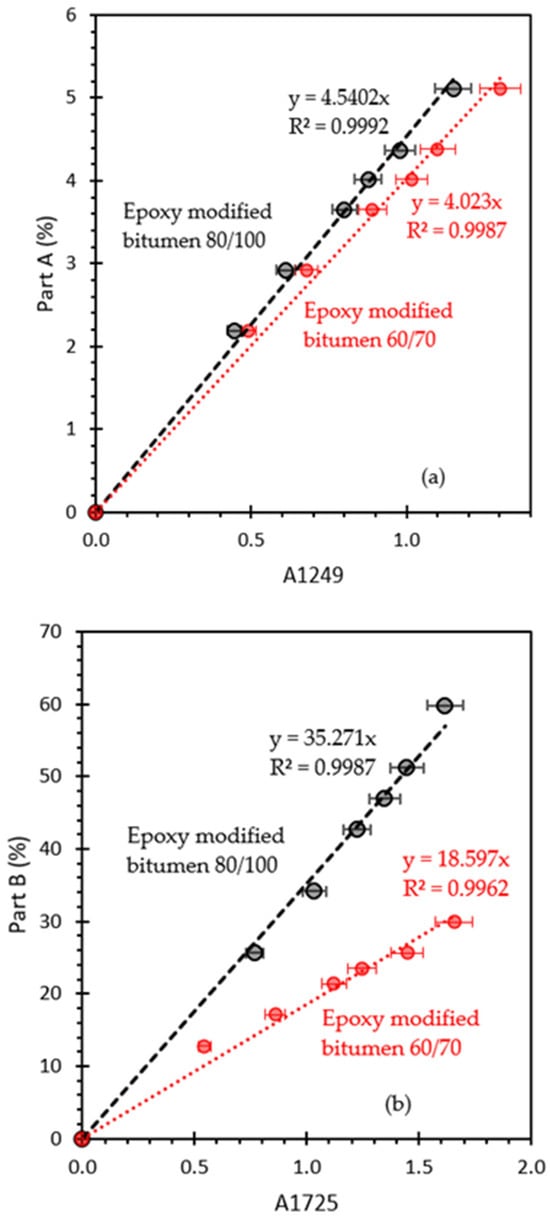 - FTIR can accurately determine the epoxy content within bituminous binders and therefore prevent possible fraud at the mixing plant level. When an on-field construction target mixture of a bituminous binder with 25% epoxy is used, the equations in Figure 12 and Figure 13 can be used for bitumen grades 80/100 and 60/70, respectively. The 25% modified epoxy binder is recommended by the New Zealand Transport Agency (NZTA) to optimise strength, durability, and economic benefits of modified epoxy surfacing.