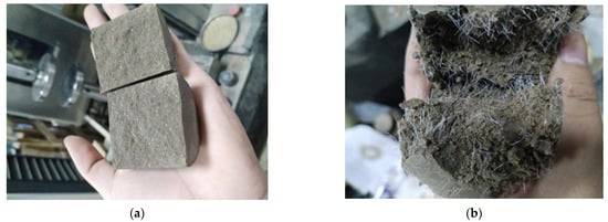 Split damage photographs of stabilized soil samples. (a) Without fibers. (b) With 0.15‰ fibers.
