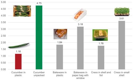 The research by Otto et al. [7] also shows that the function of packaging and the associated protection against food waste are often not considered, which leads to very sustainable ratings of unpacked food. This finding can also be confirmed by the results of the usefulness evaluation in this study. With the help of practical data on food waste in Austrian retail, the Denkstatt Institute carried out an ecological evaluation of packaged and unpackaged cucumbers. According to this, the carbon footprint of the packed one is better if the waste rate of the unpackaged variant in retail and among consumers is more than six percent higher than the waste rate of the cucumber packed in plastic [4]. It is important to emphasize that this calculation only refers to the carbon footprint and does not lead to a statement about which product is more sustainable. For an accurate sustainability assessment, not only one aspect but many can be used. But nevertheless, under certain circumstances, this packaging also has a benefit that was maybe not considered in the participants’ assessment as ‘not useful at all’.