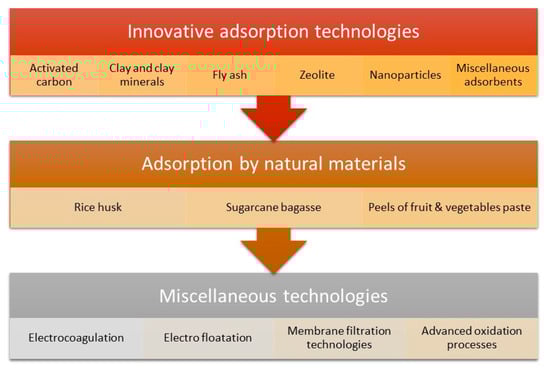 Several water treatment techniques are available based on water treatment techniques and their classification into traditional procedures, established techniques, and active research areas [94]. Each treatment technique has advantages and disadvantages in terms of cost, efficiency, practicality, and environmental effects. Figure 4 discusses the major inorganic toxicant removal technologies.