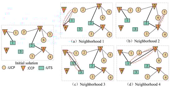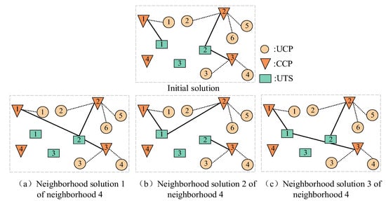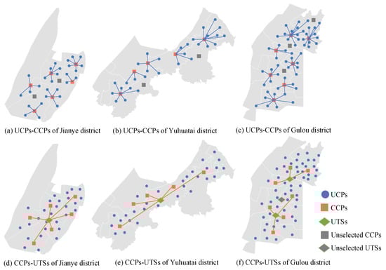 - In order to improve transportation efficiency, any two CCPs are not connected to each other, and any two UTSs are not connected to each other. The capacity of each CCP and each UTS is the same.