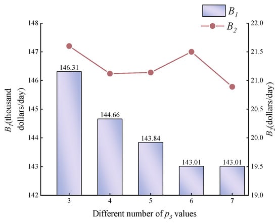 Moving facilities for MSW transportation underground is particularly significant for land resource saving and land appreciation [,]. Equation (19) is formulated to monetize the land conservation benefit. Equation (20) demonstrates the environmental benefits brought by the UWCS, including reduced pollution benefits and non-renewable energy savings benefits [,]. Pollution benefits are calculated by multiplying the emission factors for various pollutants generated by truck transport of MSW and the unit treatment cost of these pollutants by the ground transportation miles of the UWCS network instead of trucks. The non-renewable savings benefit is calculated based on diesel prices and the total truck-related non-renewable energy consumption saved by the UWCS network.