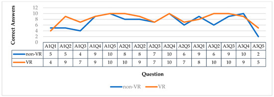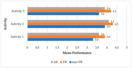 Table 2 provides the three activities employing both VR and traditional approaches (non-VR) to teaching throughout the semester, with two student groups randomly selected for each activity. All participating students were enrolled in the History of Architecture module in which they voluntarily participated in the three activities. Each activity was tackled by the two groups (VR and non-VR). The non-VR group was limited to traditional learning tools, i.e., presentations of architectural drawings and images using PowerPoint slides. Both groups, however, completed the same set of questions in a post-study evaluation. An additional qualitative inquiry was conducted to improve the validity and reliability of the findings in a mixed-methods design [