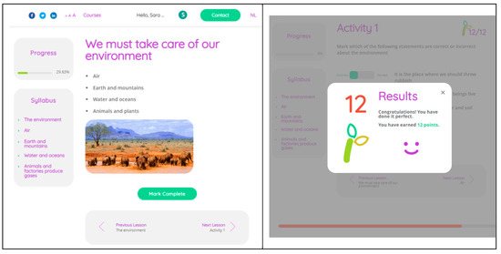 - Open access SusKids virtual learning environment https://suskids.bjaland.co/en/courses/ (26 November 2023). This platform was developed as part of the SusKids project co-funded by the European Commission. It involves working with concepts related to sustainable behaviour and is made up of four courses: Course 1. Environment, which in turn contains five thematic blocks (environment; air; the Earth and mountains; water and the oceans; and animals and plants). Course 2. Waste, which in turn contains three blocks (a description of waste; waste is a problem and what to do with waste). Course 3. What to do with waste? This in turn contains seven thematic blocks (where does waste go?; incinerators; dumps; reducing; recycling; review activities). Course 4. Construction and environment, which includes eight blocks (buildings; rocks; bricks, tiles and ceramics; cement; concrete; mortar; construction and environment; evaluation). Each course contains a progress bar.