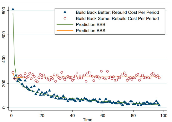 Short-term higher costs versus long-term savings: per period average rebuild costs of Build Back Better versus build back the same.