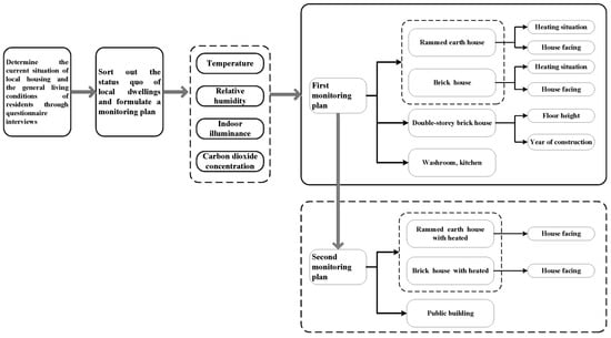 This study was divided into two phases. The first was one questionnaire on thermal comfort issues and one questionnaire on the current living conditions of the local population. The second phase involved selecting local representative houses for onsite monitoring. The former employed a census-style questionnaire, while the latter employed a questionnaire tailored to match the actual testing conditions. Although the testing season remains consistent, the questions themselves differ.