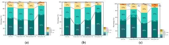 During the research period, 243 villagers participated in the completion of questionnaires. Approximately 53.27% of the population consists of males, while females account for approximately 46.95%. Among them, around 40% of individuals are aged over 60. It is worth noting that all respondents in the survey are free from significant ailments and possess the ability to live independently. A total of 214 valid questionnaires were returned, for a villager participation coverage rate of 88% (a level sufficient for sociological census research). The main content of the questionnaire included five sections: (1) basic information about the residents; (2) construction envelope; (3) conditions of heating, ventilation, and air conditioning systems; (4) residents’ thermal sensation vote (TSV); and (5) residents’ health and hygiene conditions. Under the guidance of the local village committee, the research team completed the questionnaire records within a week’s time. The onsite research is shown in Figure 3.