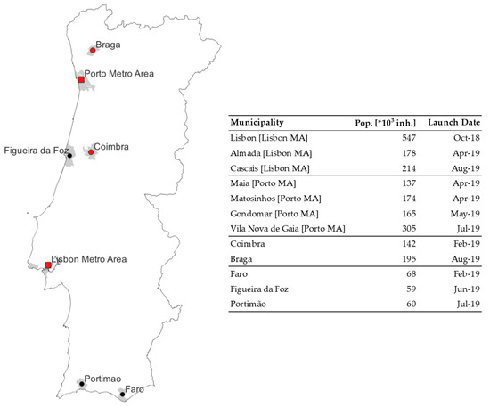The study describes the Portuguese experience and draws conclusions for other international contexts. Portugal has emerged as a significant early-stage test market for global companies. In fact, since the first scheme (Lime, in the city of Lisbon, in October 2018), more than a dozen of the major global shared e-scooters providers have operations (or have operated) in Portugal. Notably, both the Estonian company Bolt and the German company Hive chose Portugal (not their home countries) to launch their first shared e-scooters service (in the cities of Faro and Lisbon, respectively). Moreover, the American company JUMP initiated the internationalization of its shared e-scooters business to Europe in Lisbon (the company was afterwards acquired by Uber and later on taken over by Lime in a Uber–Lime business agreement). A recent industry report acknowledged Lisbon as the city with the second-highest number of shared e-scooter trips per capita in Europe during the second quarter of 2022 [24]. Another notable aspect of the Portuguese experience is that, at the outset, e-scooter sharing systems were deployed not only in the large metropolitan areas but also in many small and medium-sized cities—a context that is yet to be properly addressed in the literature. For all these reasons, relevant insights can be drawn from this case.