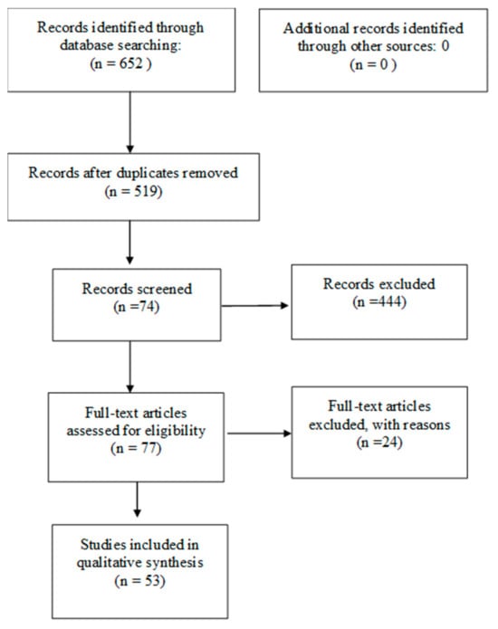 Thirdly, the authors evaluated the titles, abstracts, keywords, and findings of the retrieved publications and screened them in accordance with the following criteria to discover the papers that were most pertinent to this review: (A) Is the article’s main topic the remote work of employees during the COVID-19 pandemic? (B) Is management or leadership emphasized in the article? Articles that failed to meet both (A) and (B) were not considered for the review. There were 77 publications left after this procedure. A second exclusion was required after carefully reading the articles once again, leaving 53 publications for additional analysis. These papers reported on telework in public and private organizations.