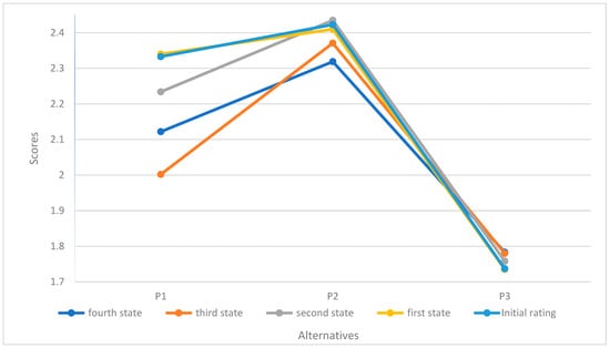 Table 7, the score function was calculated so that the maximum and minimum could be obtained for the calculation of AAI and AI, which were calculated using Equation (18). The results regarding creating ideal and anti-ideal solutions for the MARCOS method are given in the matrix in