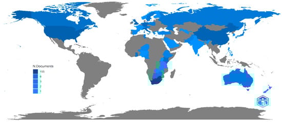 Global spatial distribution of LWE and SFS scientific production (generated using the R-bibliometrix tool developed by Aria and Cuccurullo []) (http://127.0.01:6225/#shiny-tab-collabWorldMap, accessed on 10 August 2023).