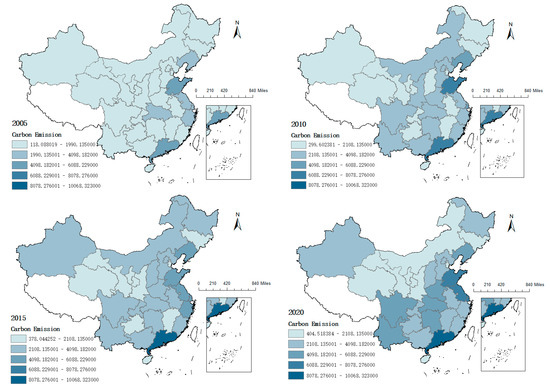Note: In the carbon emission accounting formula, refers to the total carbon emission in year t, 44/12 is the molecular weight of carbon in carbon dioxide, represents the consumption of energy i in year t, represents the thermal equivalent of energy i, represents the carbon emission factor of energy i, and represents the carbon oxidation factor of energy i.