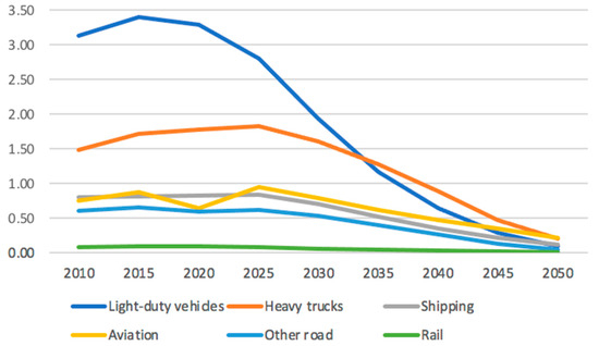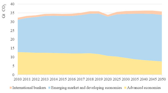 With rapid economic development and continual advancements in technology, the transportation sector is urgently required to decarbonize to fulfill the net-zero commitments within the economic sphere. According to the International Energy Agency (IEA), global urban passenger transport carbon emissions are projected to grow at an average annual rate of 1.7%, with developing and transitional economies expected to reach 3.4% and 2.2%, respectively, by 2030 [1]. Figure 11 displays the carbon emission projections for the transportation sector across different types of countries, indicating that both technologically advanced and developing countries are indeed facing significant carbon reduction challenges in the long term [143].