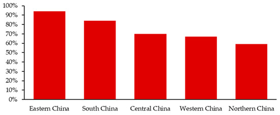 The proportion of people who can correctly recognize low-carbon in each region of China is shown in Figure 4.