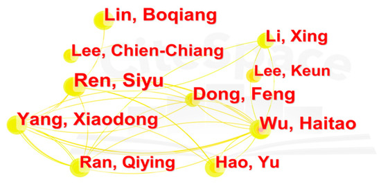 The scholars Ren and Siyu of Nankai University, who published the most articles in this research field (eight articles), mainly focused on the relationship between energy efficiency and industrial structure upgrading. The research shows that green and sustainable development has an obvious driving effect on the industry [37]. Other authors have published five articles in the field in WOS source journals. China University of Mining and Technology scholar Dong, F. thinks industrial convergence affects the energy efficiency of manufacturing in newly industrialised countries [38]. Xiamen University scholar Lin, Boqiang focus on green technology, CO2 emissions, Urban innovation, environment [39]. Beijing Institute of Technology scholars Wu, Haitao and Hao Yu and Xinjiang University scholars Ran Qiying and Yang, Xiaodong focus on the promotion effect of green economic growth on industrial structures [40]. Nanjing University scholar Li, Xing and Nanchang University scholar Chien-Chiang Lee both research the relationship between industrial upgrading and the global value chain [41]. National Research University Higher School of Economics scholar Lee Keun in view of the fourth industrial revolution discusses changing global value chains and industrial upgrading in emerging economies [42]. The articles of the top ten scholars are representative of understanding the research scope and context of scholars in the field of “industrial upgrading.”