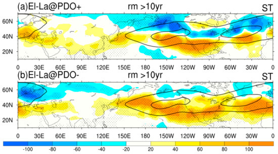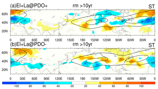 - Zhu, W.J.; Sun, Z.B.; Zhou, B. The impact of Pacific SSTA on the interannual variability of Northern Pacific storm track during in winter. Adv. Atmos. Sci. 2001, 18, 1029–1042. [Google Scholar]