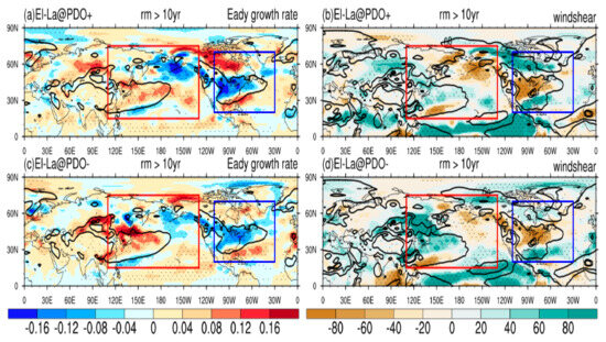 - Chu, C.J.; Hu, H.B.; Yang, X.-Q.; Yang, D.J. Midlatitude Atmospheric transient eddy feedbacks influenced ENSO-associated wintertime Pacific teleconnection patterns in two PDO phases. Clim. Dyn. 2020, 54, 2577–2595. [Google Scholar] [CrossRef]