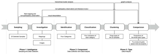 The research methods involve integrating sampling of the study area, data collection, and analysis into three sequential phases: intelligence, component, and type (Figure 3). Similar workflows have been introduced to the research of vernacular architecture, such as the framework for ordinary American buildings and landscapes [].