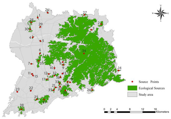 - Yang, Z.; Jiang, Z.; Guo, C.; Yang, X.; Xu, X.; Li, X.; Hu, Z.; Zhou, H. Construction of ecological network using morphological spatial pattern analysis and minimal cumulative resistance models in Guangzhou City, China. Chin. J. Appl. Ecol. 2018, 29, 3367–3376. [Google Scholar]