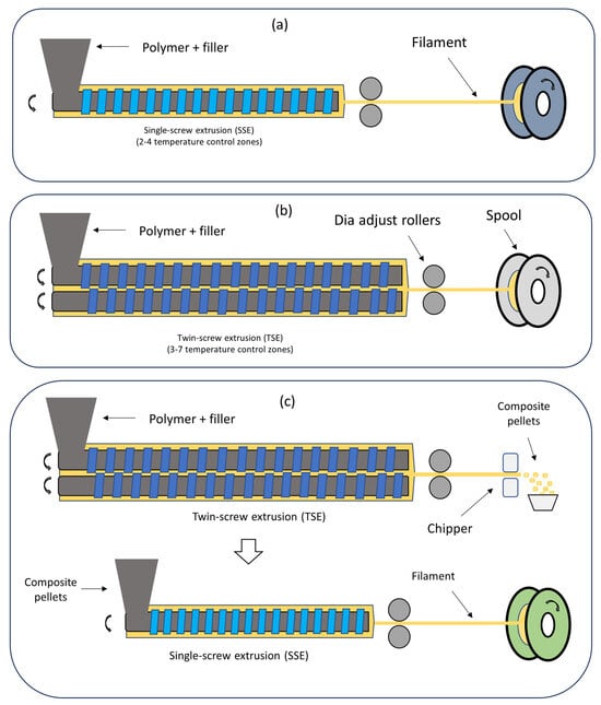 - Singh, J.; Singh, R.; Sharma, S. Effect of processing parameters on mechanical properties of FDM filament prepared on single screw extruder. Mater. Today Proc. 2022, 50, 886–892. [Google Scholar] [CrossRef]
