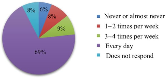In answer to, “What is the average distance you travel in a day?”, the findings indicated 10% of the respondents cover less than 3 km daily, 43% traverse distances between 3 km and 10 km, 42% journey beyond 10 km, and 5% abstained from answering. A distinct question regarding the weekly frequency of car usage, depicted in Figure 2, highlighted that 69% of those surveyed operate their vehicles every day. On being inquired, “Would you consider purchasing an electric vehicle?”, a significant 75% responded positively, while 21% showcased a disinclination towards the idea, and the remaining 4% abstained from answering.