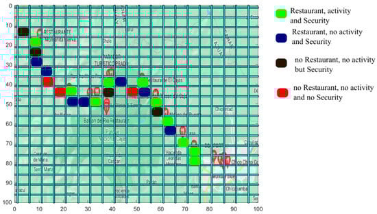 To systematically evaluate these aspects and assign them numerical values, the route was divided into segments. Utilizing information from Google Maps regarding tourist attractions, a grid with 5-km increments was created. This grid interval was chosen based on the density of tourist points of interest along the route. The values from Table 3 were then applied to this grid, reflecting the weight assigned to each criterion and its placement within the grid.
