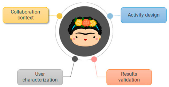 Thus, FRIDA is structured in four elements (collaboration context, user characterization, activity design, and validation of results) (Figure 1) that make up the collaborative intervention framework between therapists and software developers, as well as the tool for the agile design of the software applications required for each person with ASD.