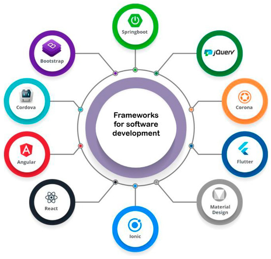 16. Editora Cronapp. Conheça 10 Frameworks que Tornam Mais Rápido o Desenvolvimento de Softwares. Blog Cronapp.io, 30 September 2019. Available online: https://blog.cronapp.io/frameworks-para-desenvolvimento-de-softwares/ (accessed on 12 September 2022).