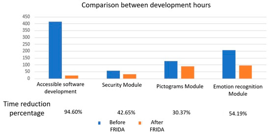 On the other hand, the use of the FRIDA framework generates the software architecture for each legacy application and streamlines the configuration of said software according to the software requirements for each particular user. Therefore, interdisciplinary interaction between therapists and software developers will always be recommended to achieve better results. It is highlighted that with the use of the app design framework included in FRIDA, this is performed in a more agile way, significantly reducing the development times of each instance of the software, in accordance with the requirements for each user. This is perhaps the greatest contribution provided by this study from the approach of computer sciences in situations of support for individuals with intellectual disabilities and cognitive development who require effective tools for treatment.