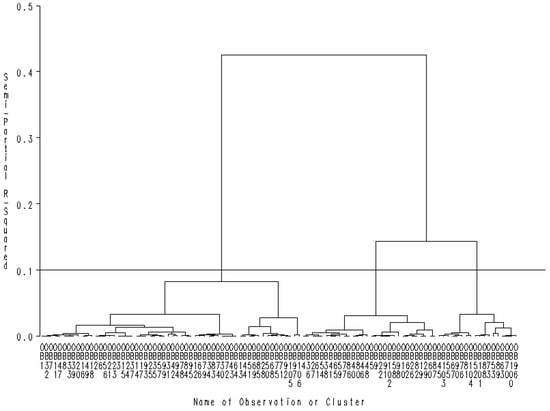 Figure 1. Depending on the chosen error level, more or fewer classes can be constructed. For example, if the cut is made at the level of 0.05, we will have four classes which are fairly close to one another. If the graph is cut at the 0.2 level, there will be two non-homogeneous classes. If the 0.1 threshold is chosen, there will be three different classes of enterprises with a homogeneous structure. The structure of each class can be seen in