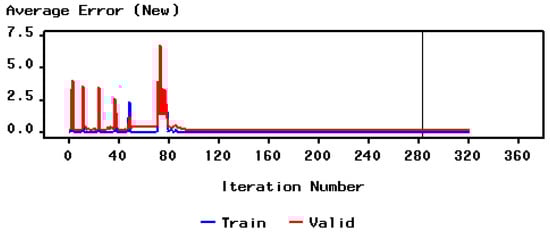 Figure 3. From the graph of the two errors, it can be seen that at the beginning, both errors had quite important fluctuations, but starting with iteration 95, they start to stabilize and tend towards zero. The level of the error decreased from 0.3098 to 0.002.