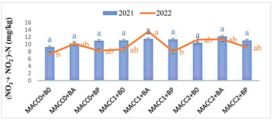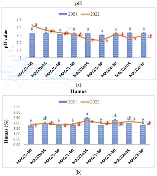| MACC2 + BA | 7.84 ± 0.13 a | 8.21 ± 0.25 ab | 5.76 ± 0.13 ab | 6.56 ± 0.06 a |