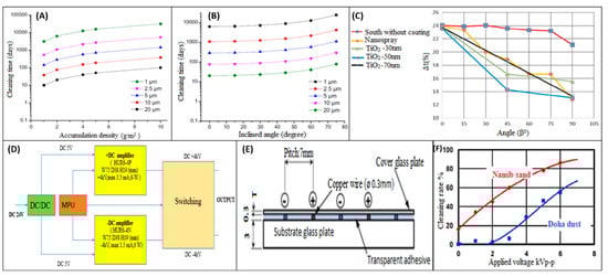 - Gholami, A.; Khazaee, I.; Eslami, S.; Zandi, M.; Akrami, E. Experimental investigation of dust deposition effects on photo-voltaic output performance. Sol. Energy 2018, 159, 346–352. [Google Scholar] [CrossRef]