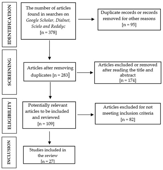 To carry out this systematic review, the following search strategies were employed. Initially, a search for articles related to the subject matter was conducted using the following databases: Google Scholar, Dialnet, Scielo, and Redalyc.
