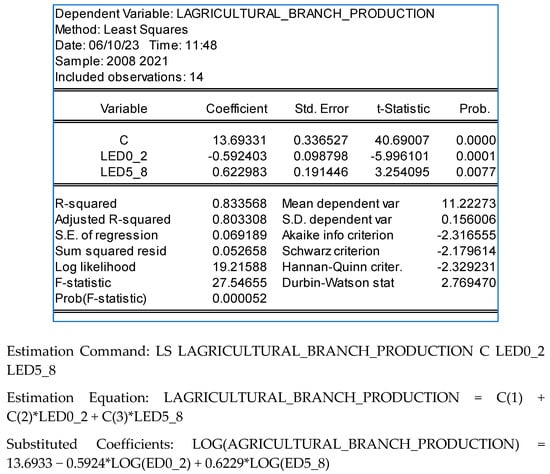 Regression model results between the value of agricultural production and employed population by education levels (ED0_2; ED5_8). Source: authors’ calculations (raw data source: NIS and Eurostat, processed in EViews 12 Student Version Lite).