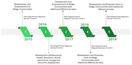 As shown in Figure 1, the changing priorities set by the central government through the Ministry of Villages, Development of Disadvantaged Regions, and Transmigration are a reference for village-level development planning.
