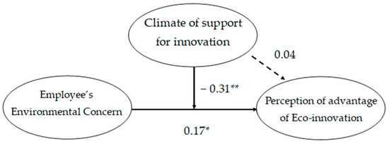 Despite the fact that the climate of support for innovation has received massive scholarly attention [44], to the best of our knowledge, its role as a moderator in the relationship between a personal attitude and the evaluation of organizational practices has received limited attention. Trying to fill this gap, in this study we examine if a climate of support for innovation can boost the relationship between employees’ environmental concern and their perception of the advantage of eco-innovation.