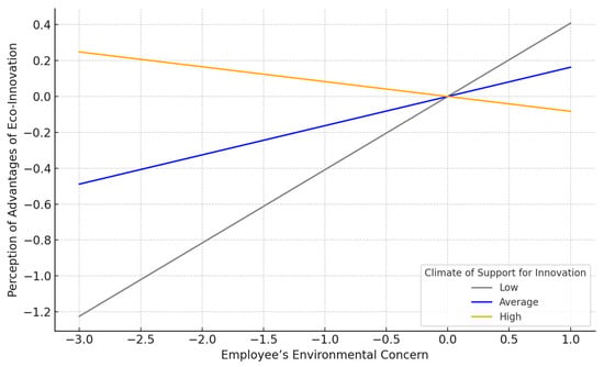 This study explored and found a direct and positive relationship between employees’ environmental concern (EEC) and the perception of advantages of eco-innovation. Furthermore, it was observed that this relationship is moderated by the climate of support for innovation, indicating that the correlation between EEC and the perception of advantage is lower in the presence of stronger support for innovation. These findings highlight the interconnectedness of individual attitudes with employees’ perceptions of organizational choices and underscore the importance of considering both individual attitudes and organizational support when examining the dynamics of corporate environmental initiatives and their perceived benefits. While we acknowledge that the discourse addressed in this paper is only in its nascent stages, we hope to have provided a meaningful contribution to the understanding of the perception of eco-innovation within organizations and useful initial suggestions for organizations dealing with eco-innovation, offering at least a foundation for further exploration and practical guidance in this evolving field.