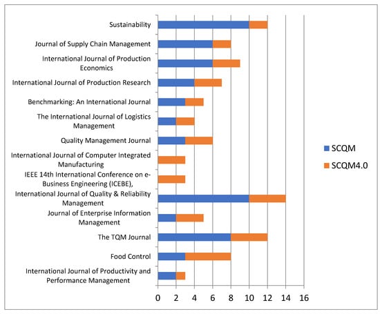 Figure 6 illustrates the distribution of papers/articles across different journals for the antecedent literature related to SCQM. Quality and supply chain-oriented journals, for example, the International Journal of Quality and Reliability Management, The TQM Journal, the International Journal of Production Economics, Supply Chain Management: An International Journal, and the International Journal of Production Research, have a wide range of publications on SCQM. Studies on SCQM 4.0 have been found in journals such as The TQM Journal, Industrial Management and Data Systems, Food Control, International Journal of Quality and Reliability Management, and International Journal of Production Economics.