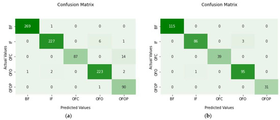 In Algorithm 1, the variables Ni, Ns, and Nf denote the number of input vectors, support vectors, and features input and support vectors. The term sv[k] includes features for the proposed framework, and in[j] is a structure’s array containing an input vector’s feature array. Again, the variable m indicates K (xi*, x(t)) in Equation (11), and F indicates f(x(t)) in Equation (10). The outermost loop repeatedly delivers input vectors to the middle loop that is implemented in Equation (10), and the innermost loop computes the square of an input vector’s distance from a support vector.