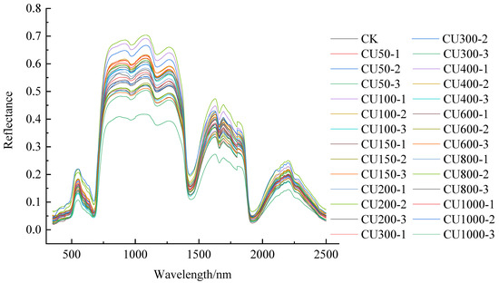 The original spectral curve of the corn leaves under different gradients of copper stress.