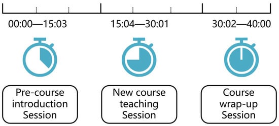 In order to create a scenario similar to the daily teaching environment and avoid the influence of other teachers present during the experiment, video analysis was employed. Video observations reveal that, during the initial 15 min of the course introduction session, teachers actively engaged students in classroom interactions, such as asking and answering questions, and provided ample praise and encouragement. Consequently, students generally exhibited fewer abnormal behaviors during this period. However, between the 15th and 30th minutes of new knowledge instruction, there was a notable increase in the number of interactions, particularly during problem-solving activities, but some students’ abnormal interactions also emerged. This phenomenon aligns with previous research discussing the decline in students’ attention after the first 10 min of a lesson, which can contribute to abnormal interaction behaviors [,]. Notably, the frequency of classroom student interaction behaviors experiences a significant uptick in the final ten minutes during the classroom summary and enhancement phase. Interestingly, abnormal student interactions initially decrease but then exhibit an increase in the five minutes preceding the end of the class.