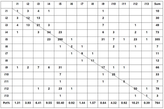 Using the modified FIACS coding framework developed for primary students’ abnormal interactions, we meticulously coded the 40 min classroom teaching interactions within the “Variety Animals” science course. Based on the coded data, we constructed a Flanders transfer matrix, which is presented in Figure 2.
